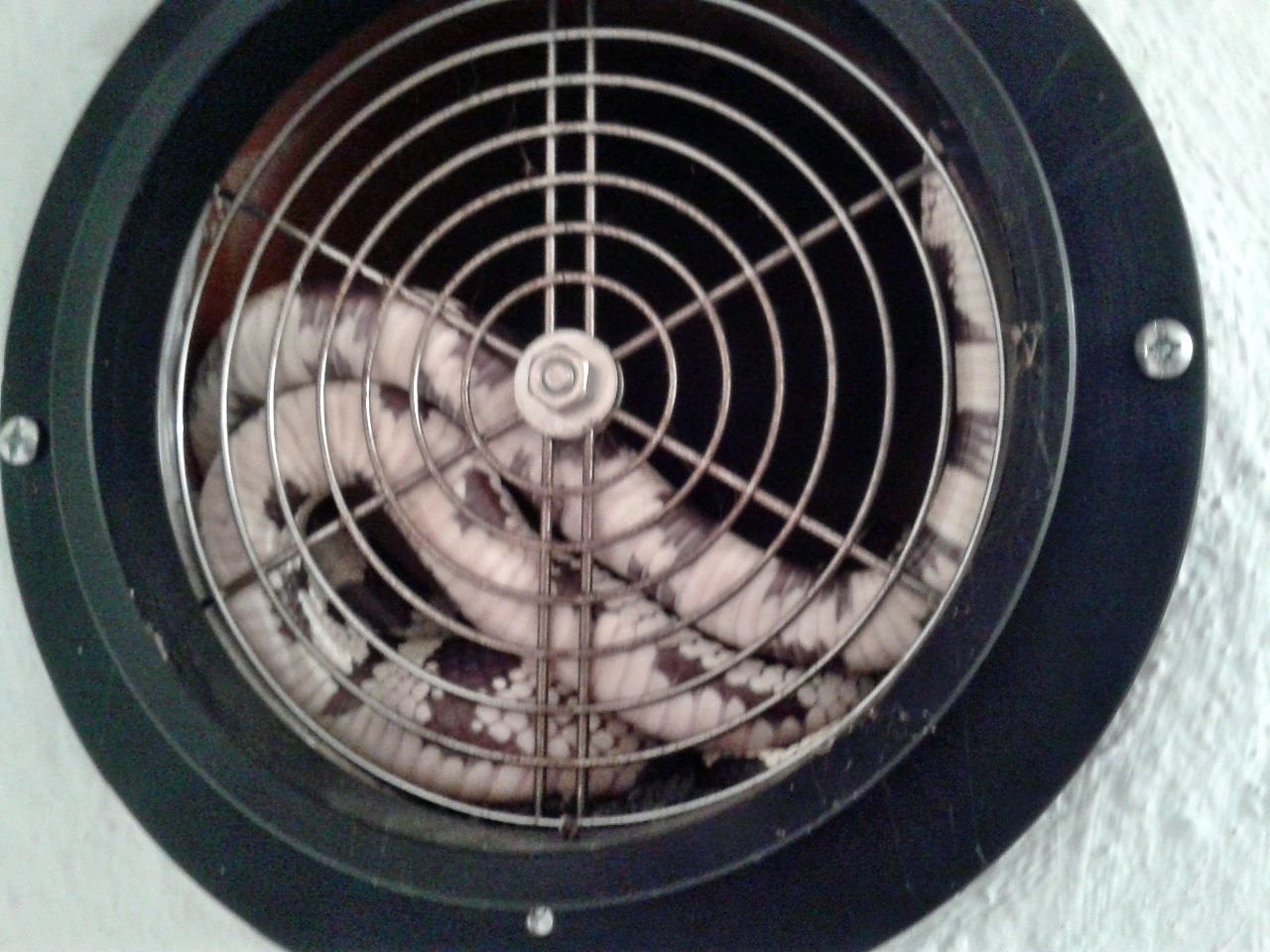 Im Beisein des Hauseigentümers schraubte der Polizist die Verschlussblende vom Lüftungsschacht ab und fing die Schlange ein.