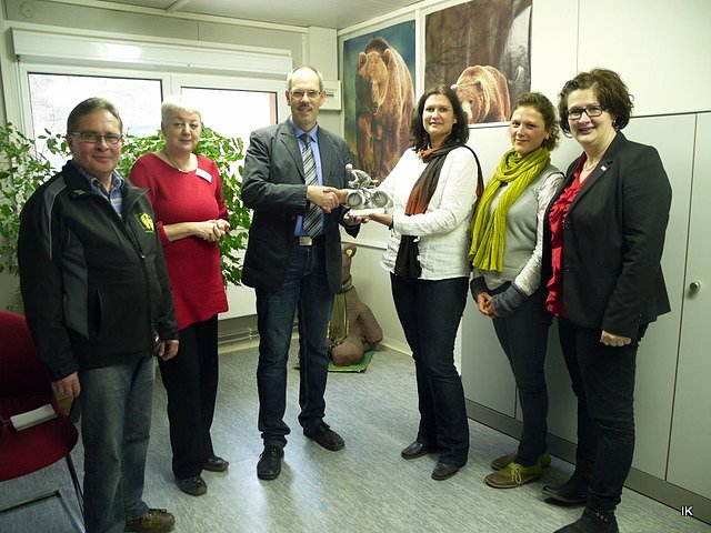 Die beiden DAK-Vertreterinnen Beatrice Knauft Müller (re.) und Christine Holdack (2.v.li) übermittelten ihre herzlichen Glückwünsche und bedankten sich beim Team des Bärenparkes für die jahrelange gute Zusammenarbeit.