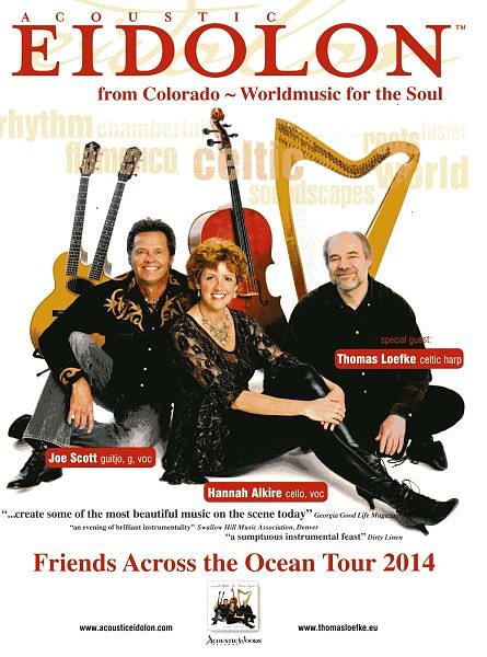 Autor: khhWir freuen uns, dass ACOUSTIC EIDOLON&Thomas Loefke auch in diesem Jahr ein Konzert in Friedrichsrode geben. Joe Scott (Double-neck Guitjo, Gitarre, Gesang) and Hannah Alkire (Violoncello, Gesang) haben einen ganz neuen Sound im Bereich akustischer Musik geschaffen.