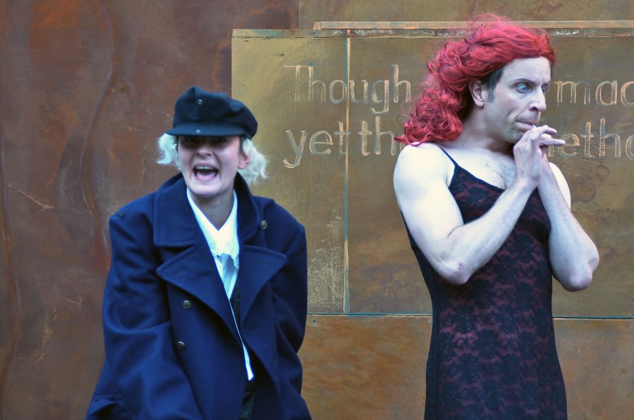 Polonius (Anika Kleinke) und Ophelia (Oliver Seidel) freuen sich auf alle Besucher am sommerlichen Wochenende. Foto: Andreas Hillmann