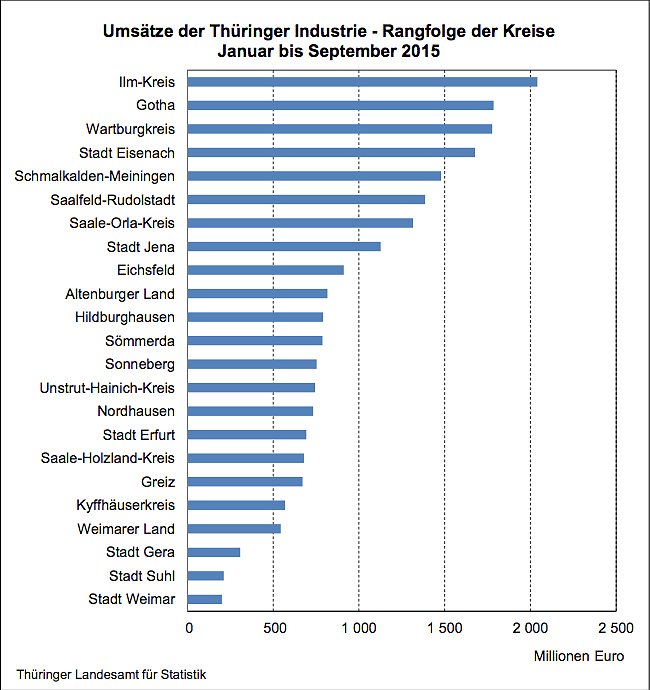 Umsätze der Thüringer Industrie - Rangfolge der Kreise Januar bis September 2015 (Foto: Thüringer Landesamt für Statistik)