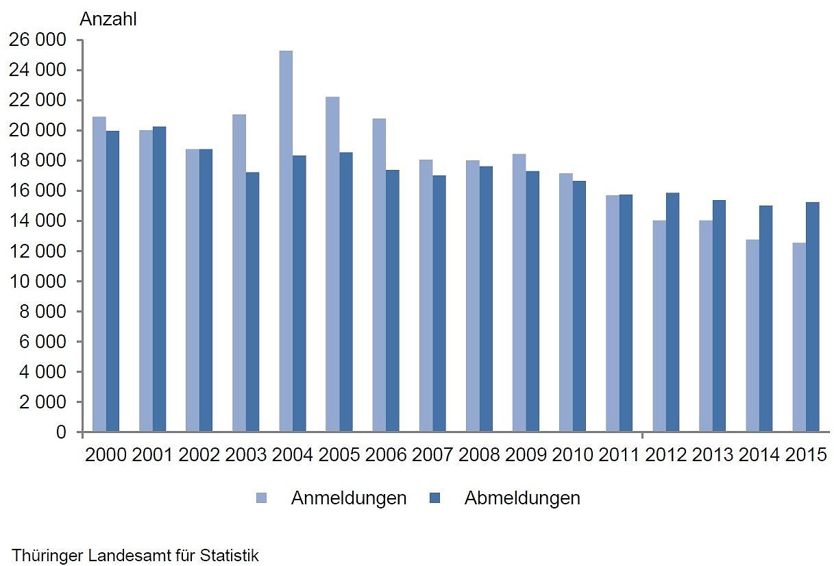 Gewerbean- und Abmeldungen von 2000 bis 2015 (Foto: TLS)