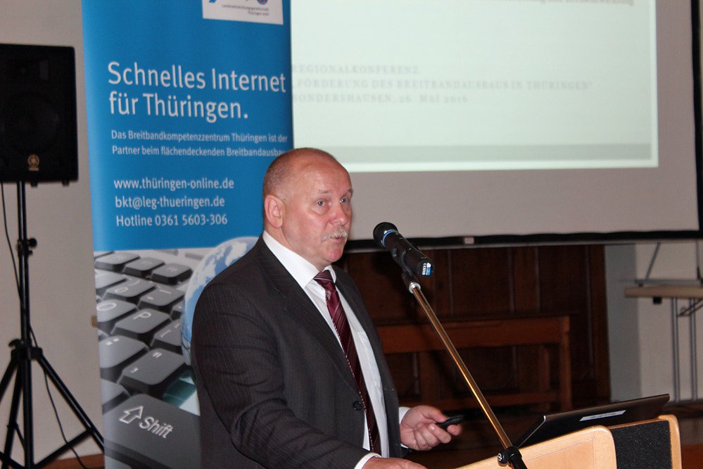 Der Leiter der Wirtschaftsförderung des Kyffhäuserkreises, Dr. Andreas Räuber, erläuterte, wie der Kyffhäuserkreis den Breitbandausbau angegangen ist und welchen Stand man erreicht hat. Der Kyffhäuserkreis ist Modellregion für den Breitbandausbau in Deutschland.