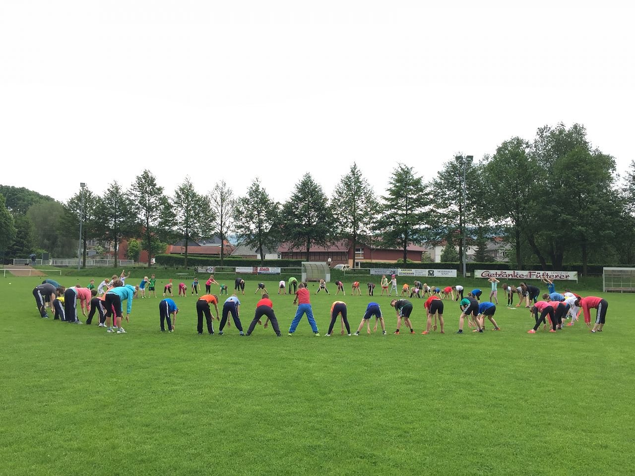 Autor: enAnlässlich des Kindertages am 1. Juni führten wir unser Sportfest auf dem Sportplatz in Beuren durch. Das Wetter hielt, es war zwar bewölkt und auch Regen angesagt, aber wir starteten trotzdem mit einer gemeinsamen Erwärmung auf dem Sportplatz.