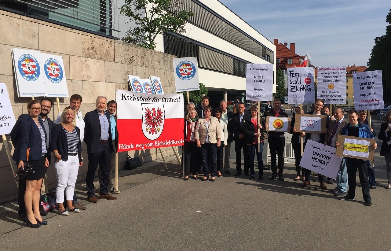 Autor: enZuvor hatten sie gemeinsam mit den Eichsfelder Landtagsabgeordneten Christina Tasch und Gerold Wucherpfennig vor dem Landtagsgebäude gegen den drohenden kommunalen Kahlschlag im Eichsfeld und den möglichen Verlust des Kreissitzes demonstriert.