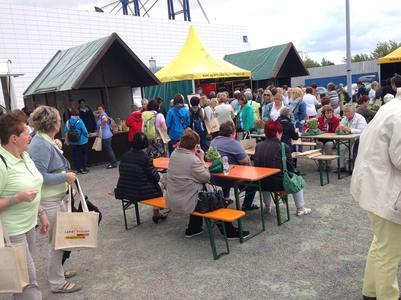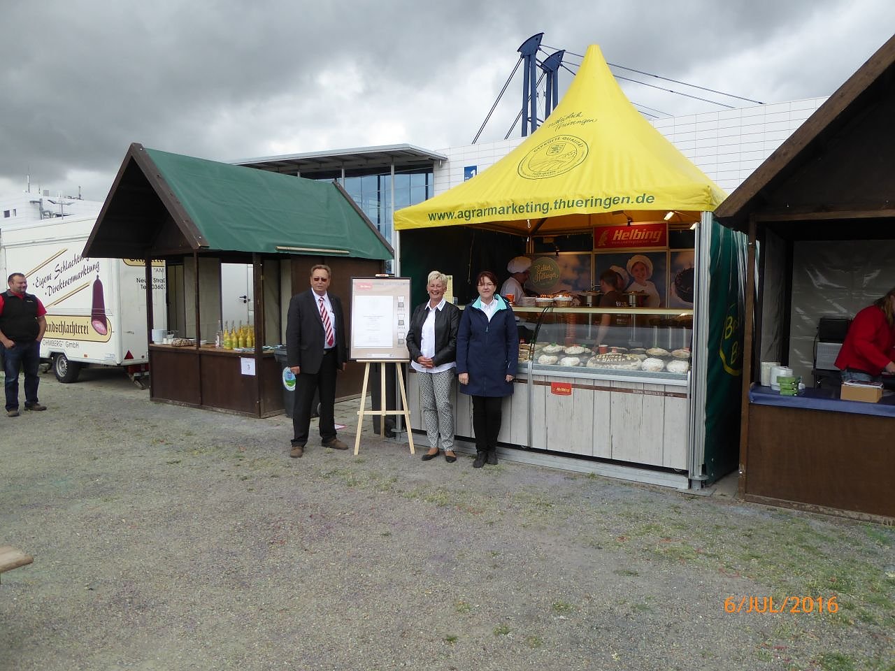 Die Erzeugerbörse Eichsfeld, vertreten durch Helbing (Mein Lieblingsbäcker), Martin Zappe (Landschlachterei Am Ohmberg), Ute Morgenthal und Kerstin Sommerfeld (Erzeugerbörse), versorgten die Landfrauen mit Eichsfelder Spezialitäten und touristischen Angeboten der Region neben anderen Anbietern aus Thüringen.