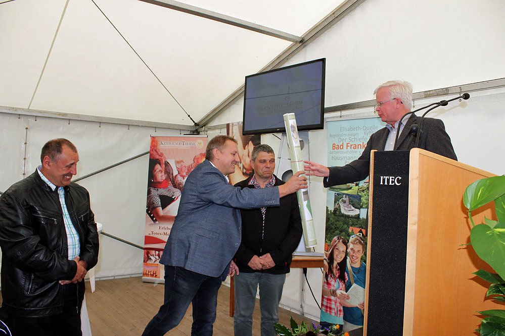 Alle Redner verwiesen auf die Bedeutung des Schiefen für den Tourismus in der Region, der dann auch die anderen Sehenswürdigkeiten besser zur Wirkung kommen lasse.