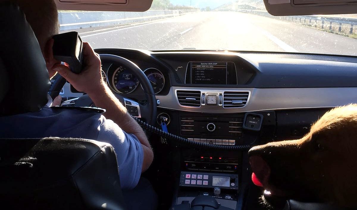 Offenbar hatten auch die Hunde bereits gemerkt, dass es lebensgefährlich ist, was sie da tun. Denn die Beamten waren gerade ausgestiegen, da hüpften die beiden auch schon in den Streifenwagen und brachten sich in Sicherheit.