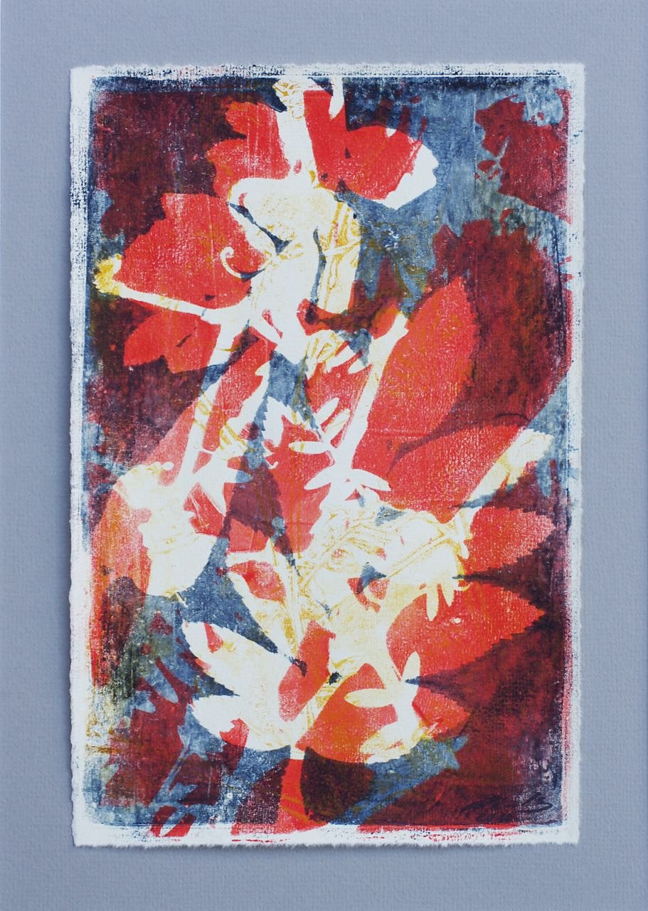 Der Zyklus Sleepless hingegen wurde inspiriert von einer Tanzchoreografie (Jirí Kylián) – das Prozesshafte der Technik Monotypie mit ihren vielen Schichten lässt hier die Tänzerinnen in Bewegung erscheinen, transformiert Bewegungen in Linien und Linien in Formen, die schließlich den Emotionen der Gestalten Ausdruck verleihen.