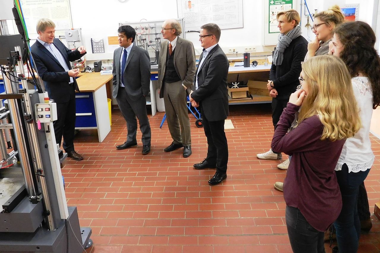 Autor: enNach einer Begrüßung im Alten Rathaus besuchten der Konsul und Bürgermeister Thomas Spielmann gemeinsam das Gesteinslabor Dr. Jahns in der Hospitalstraße, welches in den USA eine Produktionsstätte für Messgeräte betreibt. Kunden finden sich für die Arbeit des Labors in der ganzen Welt.