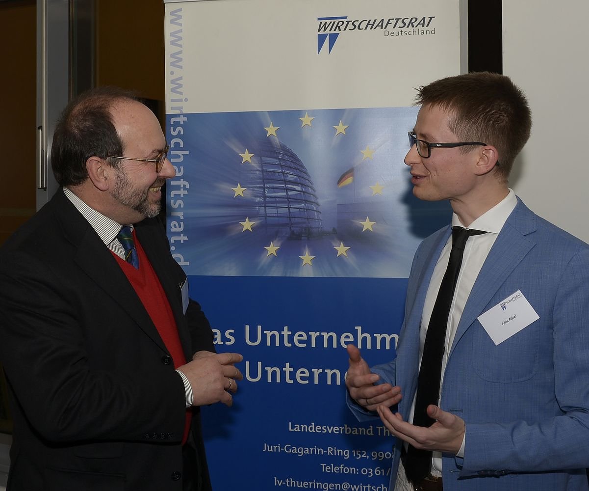 Mihajlo Kolakovic (li.), Vorsitzender des Thüringer Landesverbandes im Wirtschaftsrat Deutschland, und Felix Rösel, ifo Institut -Leibniz-Institut für Wirtschaftsforschung an der Universität München -Niederlassung Dresden