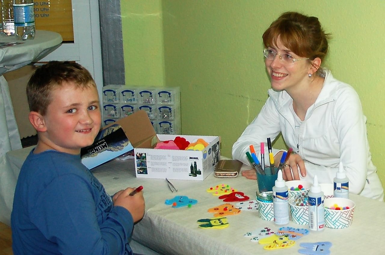 Für die kleinen Gäste war eine Bastelstraße aufgebaut. Dort konnten Filzzähne selber mit Glitzer, Wackelaugen und Schmucksteinen gestaltet werden. Gipszähne wurden von den Kinder bemalt und mit Knete gefüllt. Malbilder über Karius und Baktus lagen ebenfalls zum Ausmalen bereit. Besonders freute sich das Team wieder über die Teilnahme von einer Gruppe von Schülern aus der Tabaluga Schule in Worbis gefreut, die das kreative Angebot nutzten.