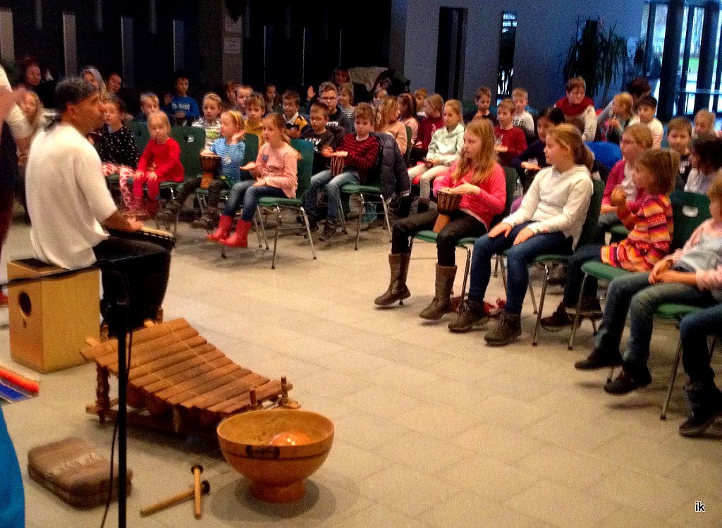 Am Ende der Veranstaltung musizierten alle Zuhörer gemeinsam, denn der Künstler hatte ja so viele Instrumente mitgebracht, die von den Kindern gespielt wurden. Alle Zuhörer waren sich einig, Alan Torres soll bald wieder einmal in unsere Stadt kommen.