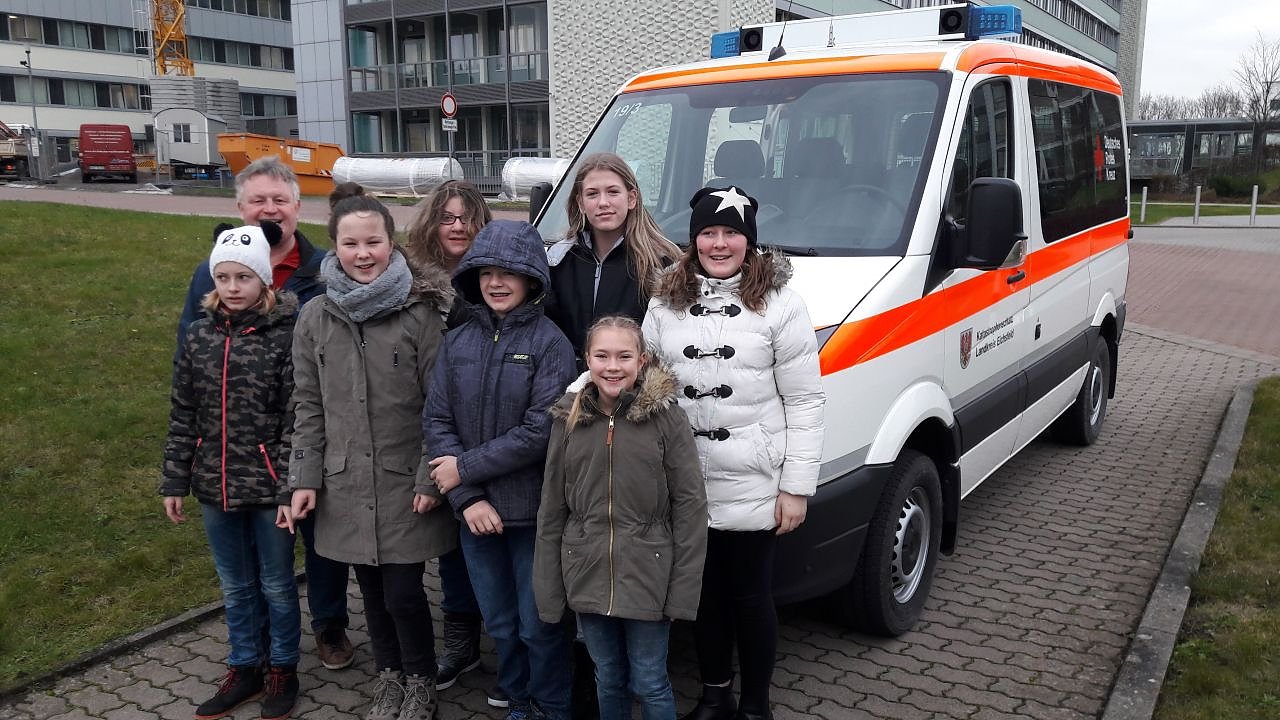 Natürlich gilt dem Lehrer und Gruppenleiter Herrn Peters für die schulinterne Vorbereitung, der Crew des Rettungshubschraubers und dem Kreisverband auch unser Dankeschön.