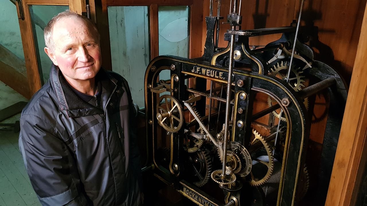 Seit 23 Jahren kümmert sich Alois Mock um die beinahe unverwüstliche Kirchturmuhr