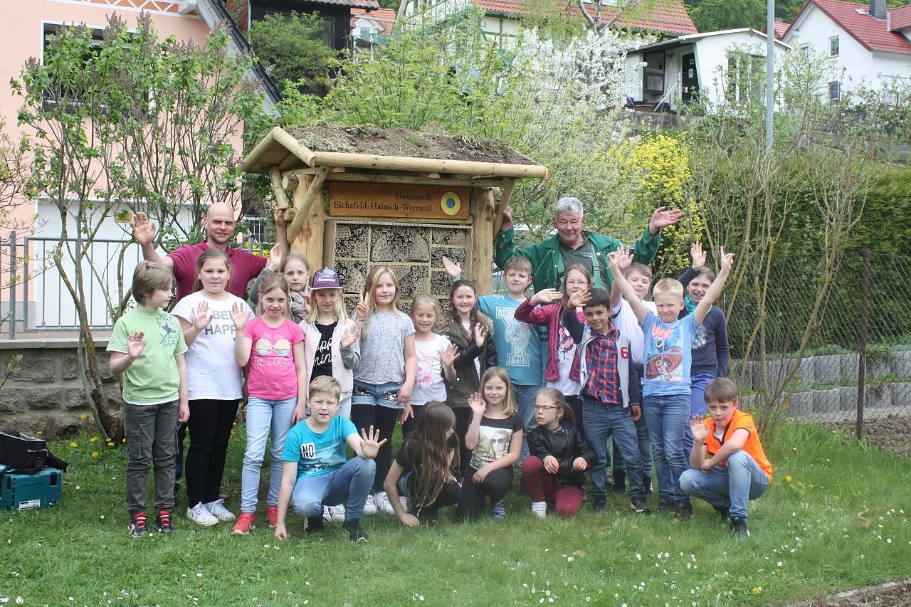 Autor: enViel Freude hatten die Schüler der 3. Klasse der Grundschule Im Luttertal beim Befüllen ihres neuen Insektenhotels, dass am 23. April auf dem Schulgelände aufgestellt wurde. Vorbereitet und begleitet wurde die Aktion vom Team des Naturpark Eichsfeld-Hainich- Werratal, das den Rohbau des Insektenhotels anfertigte.