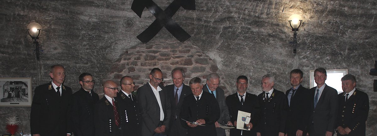 Autor: khhThüringens Umweltstaatssekretär Olaf Möller hat heute in Sondershausen das Grubenwehr-Ehrenzeichen in Gold und Silber an Mitglieder der Grubenwehren Sondershausen und Unterbreizbach/Merkers verliehen. Im Besucherbergwerk dankte er den Kumpeln im Namen des Bundespräsidenten für ihr ausdauerndes ehrenamtliches Engagement.