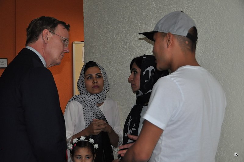 Und so erfuhr Bodo Ramelow auf Bodenstein, wie das Eichsfeld mit dem Thema Flüchtlinge umgegangen ist und noch umgeht. Heimleiter Joachim Köhler konnte aus der Arbeit in der Gemeinschaftsunterkunft berichten und gab dem Ministerpräsident auch ein wichtiges Anliegen mit auf den Weg: Er wünsche sich sehr, dass der Wachdienst auch wieder samstags und sonntags vor Ort wäre. Das Zusammenleben funktioniere ganz gut, sagte der Heimleiter. Die Kinder lernen in der Schule schnell deutsch und helfen dann auch schon mal beim Übersetzen.