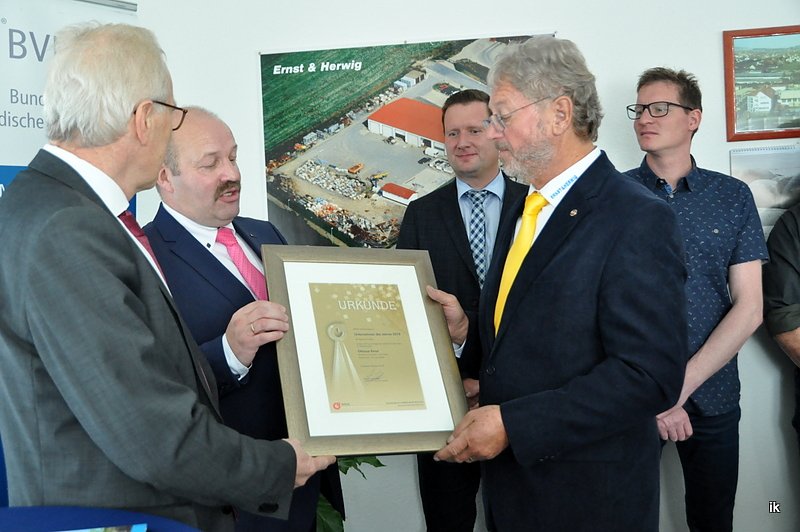 Andreas Schreiber vom BVMW nahm die Auszeichnung vor. Othmar Ernst erhielt viele Glückwünsche. Zu dessen Nachfolger Christian Kohlstedt gewandt sagte er, dass dieser in sehr große Fußstapfen treten würde und wünschte dem Unternehmen weiterhin viel Erfolg.