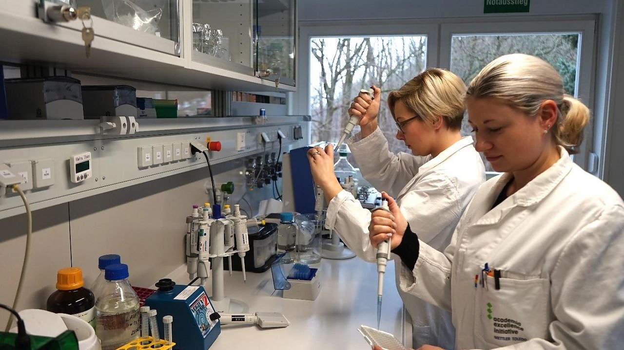 Die Infrastruktur im iba Heiligenstadt wurde grundlegend modernisiert. Für die Forschungsarbeiten stehen den Mitarbeiterinnen und Mitarbeitern wie hier Anika Hartleib (links) und Juliane Papra komfortable Arbeitsbedingungen zur Verfügung.
