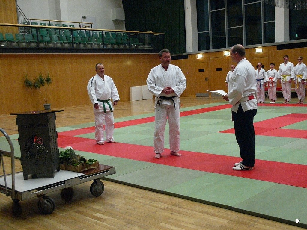 Die Überraschung hatte im Vorfeld auch niemand verraten, so dass es wirklich eine Überraschung blieb, und zwar für Joachim Retzek, seines Zeichens 1. Vorsitzender und Übungsleiter des Kampfsportvereins Leinefelde. Am 3. Januar war er 60 Jahre alt geworden. Die Überraschung gestern Abend war für ihn deshalb ein besonderes Geburtstagsgeschenk.