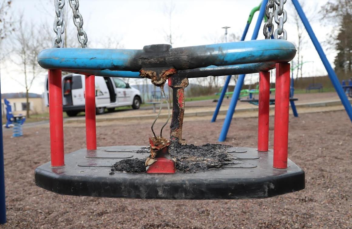 Verbrannte Schaukel am Spielplatz. Foto: René Weißbach