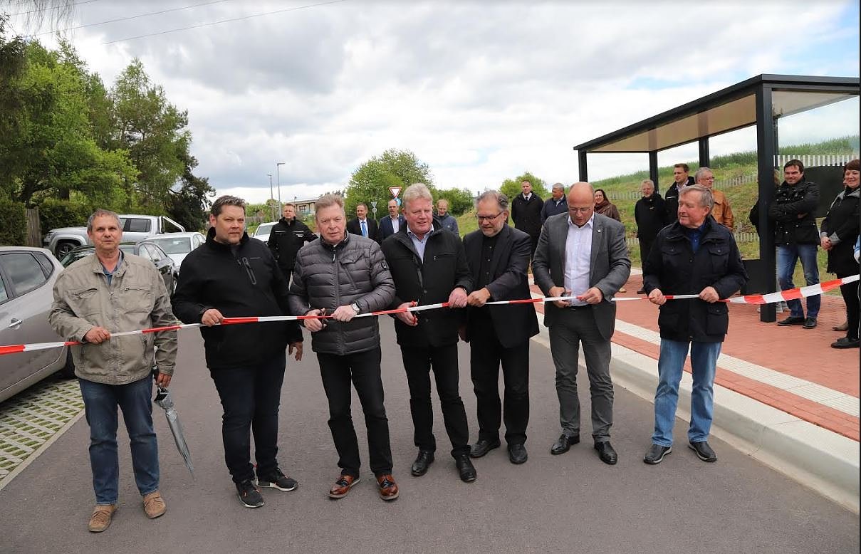 Knapp ein Jahr hat die Bauphase gedauert. Im Beisein zahlreicher am Projekt beteiligter Verantwortlicher durchschnitten Bürgermeister Marko Grosa, Ortsteilbürgermeister Dirk Moll und Gerald Schneider, stellvertretender Landrat, das obligatorische Absperrband.