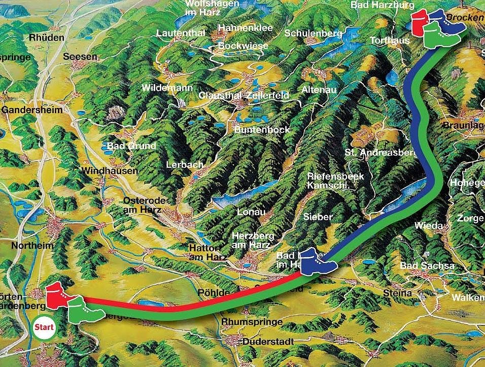 Vorerst sind jedoch die einzelnen Etappen am Samstag über das Brotmuseum in Ebergötzen (Km 14,5), dem Sportplatz in Obernfeld (Km 26,3), die Grundschule in Hilkerode (Km, 33,5), das Jugendwaldlager Pöhlde (KM 38,7) und das Gasthaus Dreymannsmühle (Km 47,8) in Barbis zu Fuß absolvieren. Sportmoderator Thomas Hickmann wird am Samstag alle Wanderer im Ziel in Bad Lauterberg (Km 49,6) in Empfang nehmen.