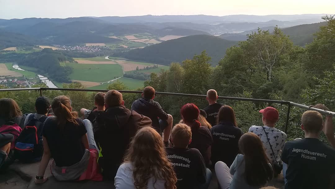Aber auch die Eichsfelder Landschaft wurde fleißig erkundet. Ob vom Dünkreuz oder der Teufelskanzel – der gute Ausblick war das Wandern wert. Für die nötige Abkühlung bei den sommerlichen Temperaturen sorgten eine Schlauchboottour auf der Werra und die selbstgebaute Wasserrutsche auf der Feuerwehrbleibe.