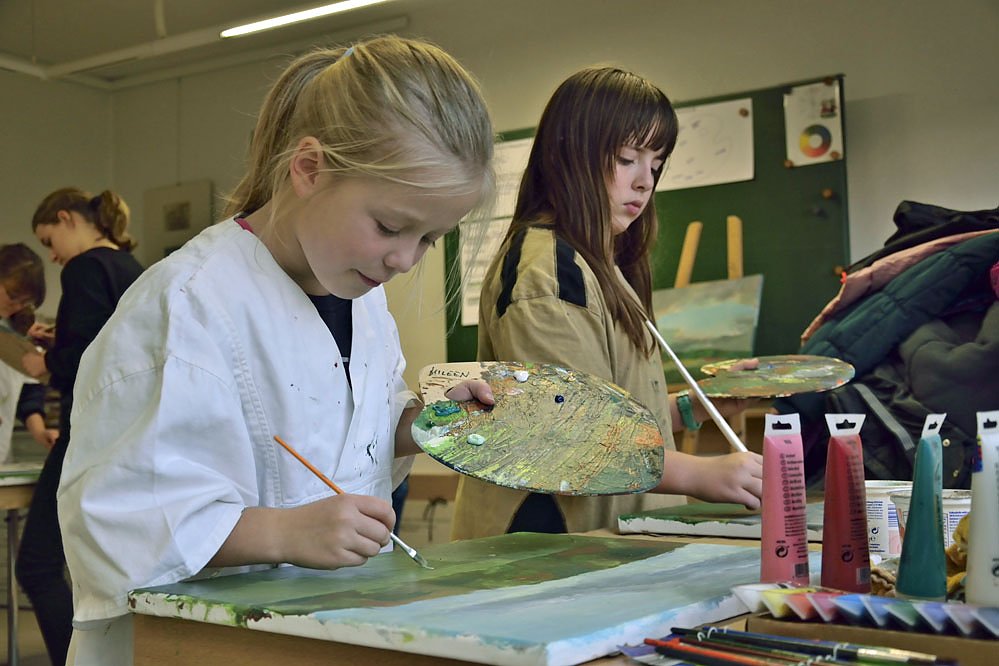 „Kinder beim Malen“, Luisa, Thea und Smila im Vordergrund)