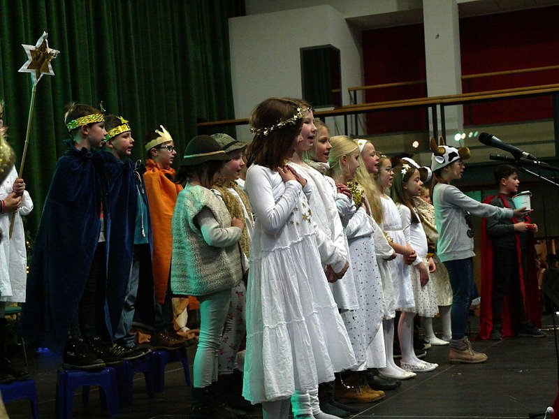 Die Fuhlrott-Kids begannen den vorweihnachtlichen Reigen mit bekannten Liedern, die von dem ein oder anderen Besucher auch mitgesungen wurden. Die Mädchen und Jungen des Kindergartens Hugo Aufderbeck erfreuten mit einem kleinen Programm und Grundschüler von der Konrad Hentrich Schule führten ein Musical mit der Weihnachtsgeschichte zur Geburt Jesu auf.