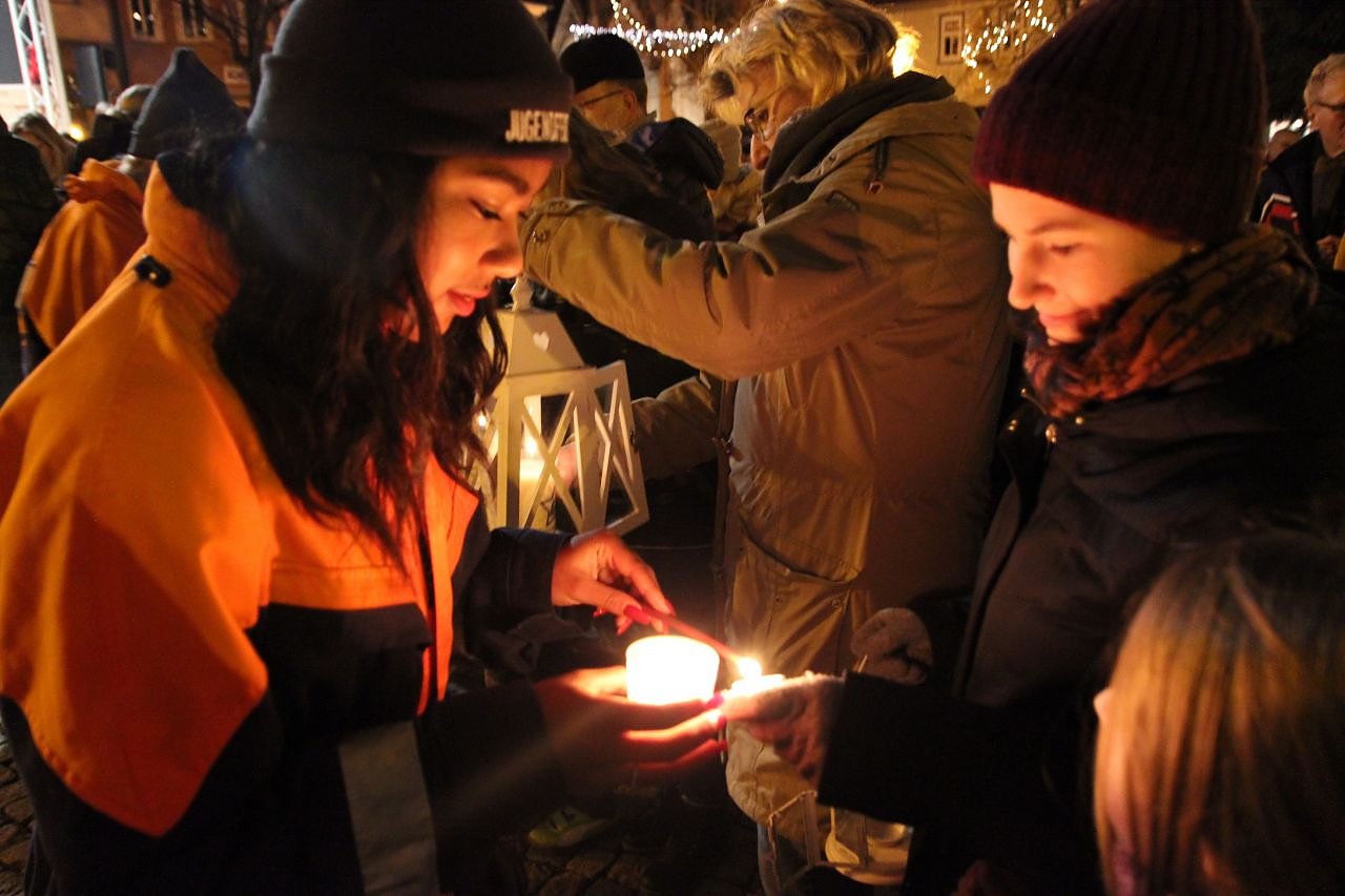 Autor: ikDas jährlich in Bethlehem entzündete Licht begab sich dieses Jahr unter dem Motto Mut zum Frieden auf die Reise. Nach einem Weihnachtsgruß von Pfarrer Markus Könen wurden die Lichter der Kinder und Jugendlichen entzündet und das Licht machte sich auf