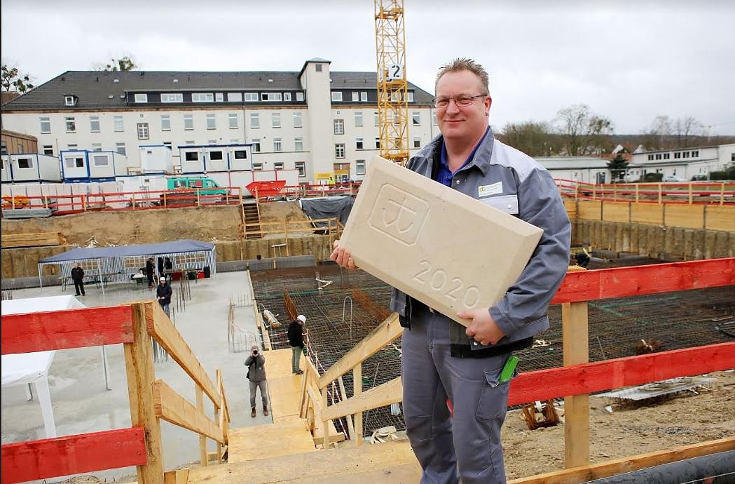 Nachdem im Sommer 2019 das alte Haus 3 auf dem Gelände des Evangelischen Krankenhauses Göttingen-Weende (EKW) abgerissen wurde und im Herbst vorbereitende Maßnahmen für den Neubau begonnen haben, wurde gestern feierlich der symbolische Grundstein für den Neubau von Haus 3 gelegt.