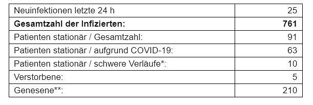 Bei der Zahl der Genesenen verwendet das Thüringer Landesamt für Verbraucherschutz analog zum Robert-Koch-Institut bestimmte Algorithmen, um die Anzahl der Genesenen grob zu schätzen. Daraus ergibt sich für Thüringen eine Schätzung von 210 Genesenen.
