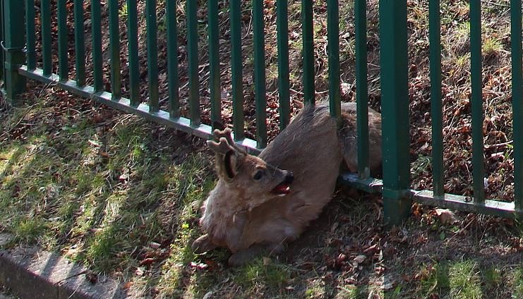 Reh steckte in Zaun fest