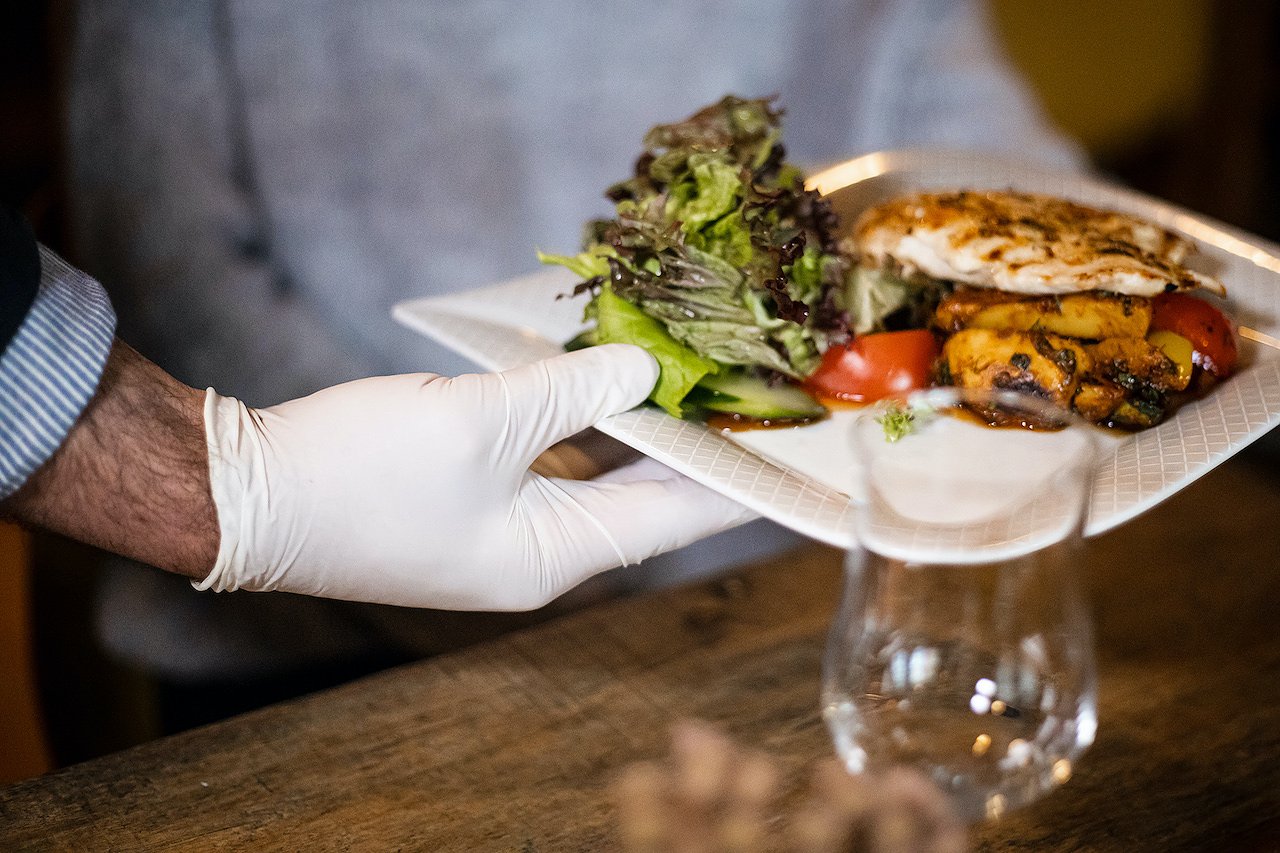 Servieren in Corona-Zeiten: Ohne Hygiene- und Abstandsregeln geht nichts in der Gastronomie. Daher sollten Gäste beim Restaurantbesuch Geduld mitbringen, meint die Gewerkschaft NGG. (Foto: NGG)