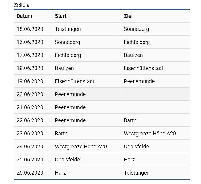 Von dort aus weiter entlang an der Ostseeküste Richtung Westgrenze, durch den Harz bis zum Ausgangspunkt der Reise. Geplant für diese Tour sind 14 Tage Erlebnis mit ein wenig Ostalgie im Gepäck.