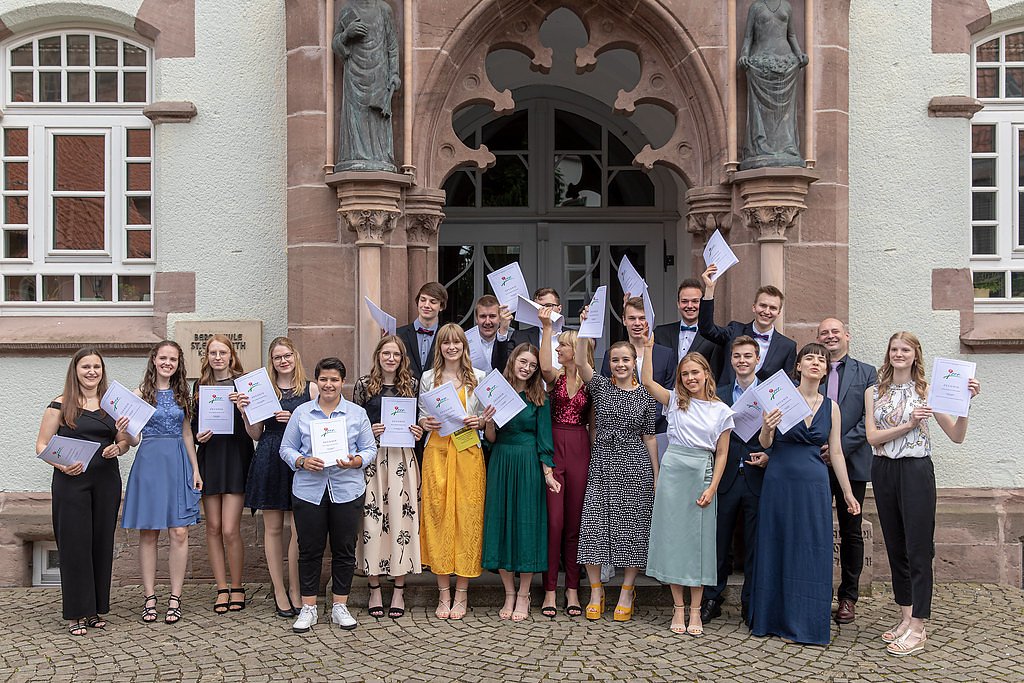 Ein Weg, der tatsächlich über Stock und Stein, sei es im Unterricht oder in Projekten und auf Reisen, seinen Verlauf gefunden habe. Es sei ihm eine Ehre gewesen, die Schülerinnen und Schüler begleiten zu dürfen. Dankbarkeit, Abschied, aber vor allem Freude über das erreichte Ziel prägten diesen Moment. Spätestens an dieser Stelle wurde deutlich, dass die Feierstunde ihr Ziel erreicht hatte: Die Würdigung der Leistung aller am Schulabschluss und Ende dieses Weges beteiligten Menschen.