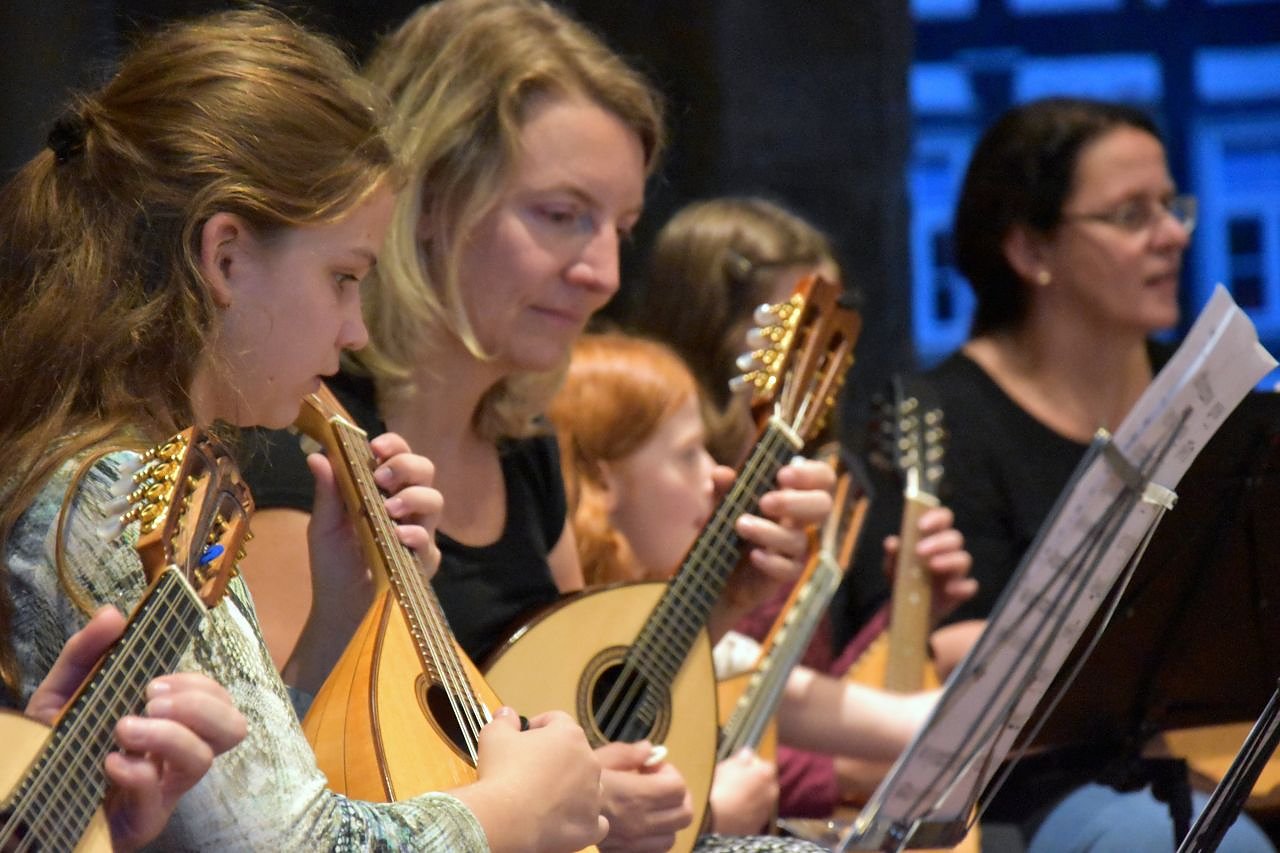 Man lernt die Konzertgitarre kennen, aber auch die E- Gitarre oder die Ukulele, ebenso wie die Mandoline, den Kontrabass oder das Banjo. Man lernt Akkorde für die Begleitung, kann aber auch in das Melodien spielen nach Noten oder Tabulatur und in die Kunst des Improvisierens komprimiert erste Einblicke gewinnen. Genauso spannend ist es für Menschen, das Universum des Dirigierens zu erleben. Anmeldeschluss ist der 1.8.2020!