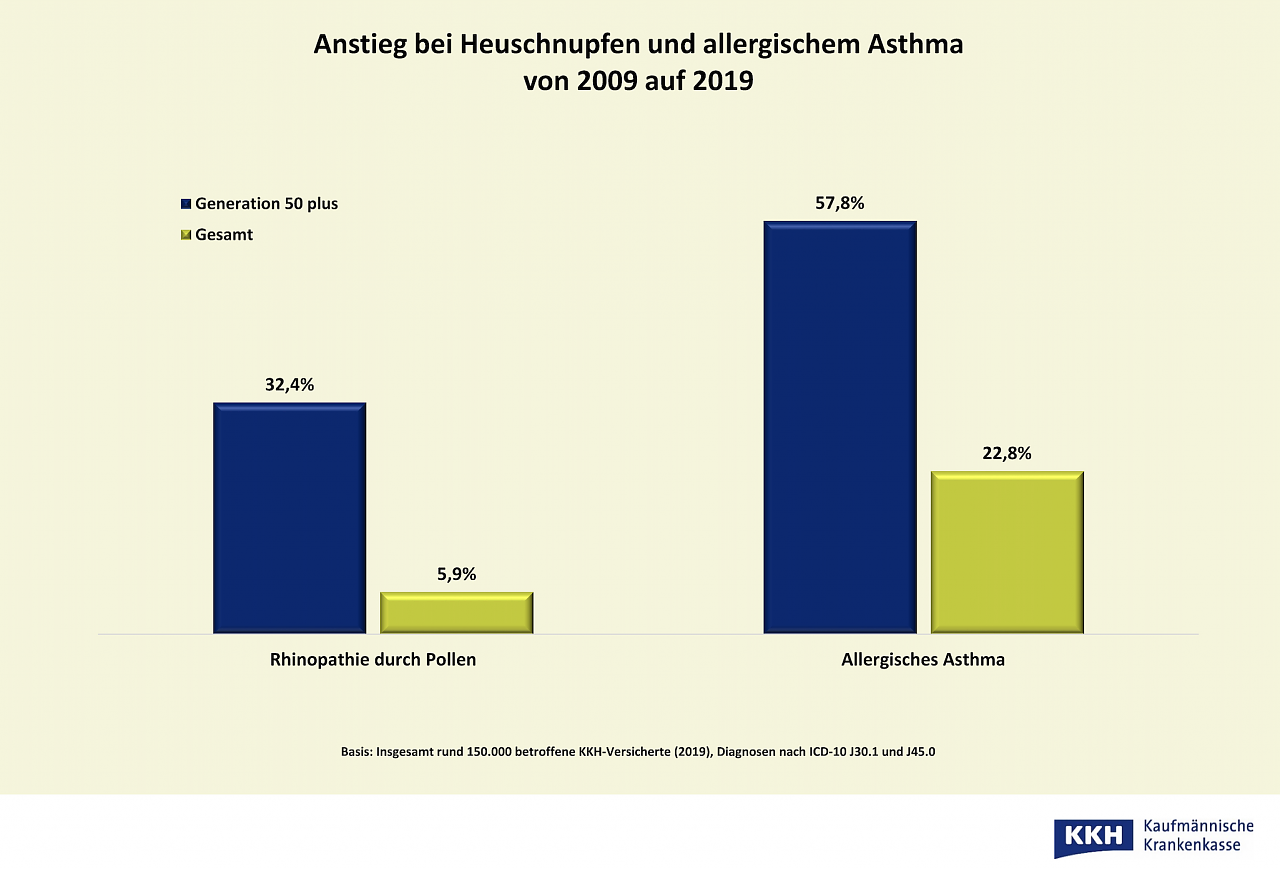 Autor: redHabe ich mit einem besonders schweren Verlauf von Covid-19 zu rechnen? Vertrage ich die Impfung überhaupt? Fakt ist: Es gibt immer mehr Allergiker. Laut Daten der KKH Kaufmännische Krankenkasse stieg die Zahl der Versicherten mit allergischem Asthma von 2009 auf 2019 bundesweit um rund 23 Prozent, in der Generation 50 plus sogar um fast 58 Prozent. Auch beim pollenbedingten Schnupfen stiegen die Diagnosen in der Altersgruppe der 50-Jährigen überproportional an – um rund 32 Prozent (im Schnitt um rund 6 Prozent).