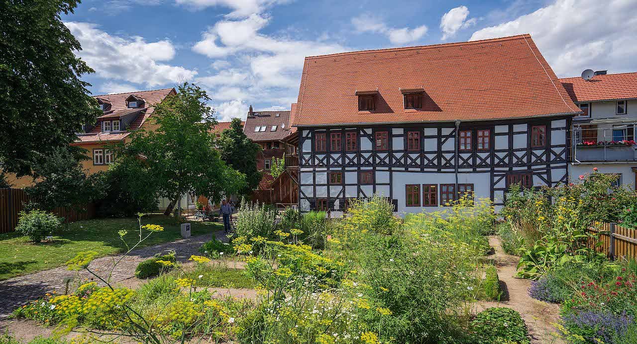 Der Apothekergarten am Apothekenmusem im Haus Rosenthal – der perfekte Platz für ein Insektenhotel (Foto: © Bildarchiv BUGA Erfurt 2021 gGmbH)