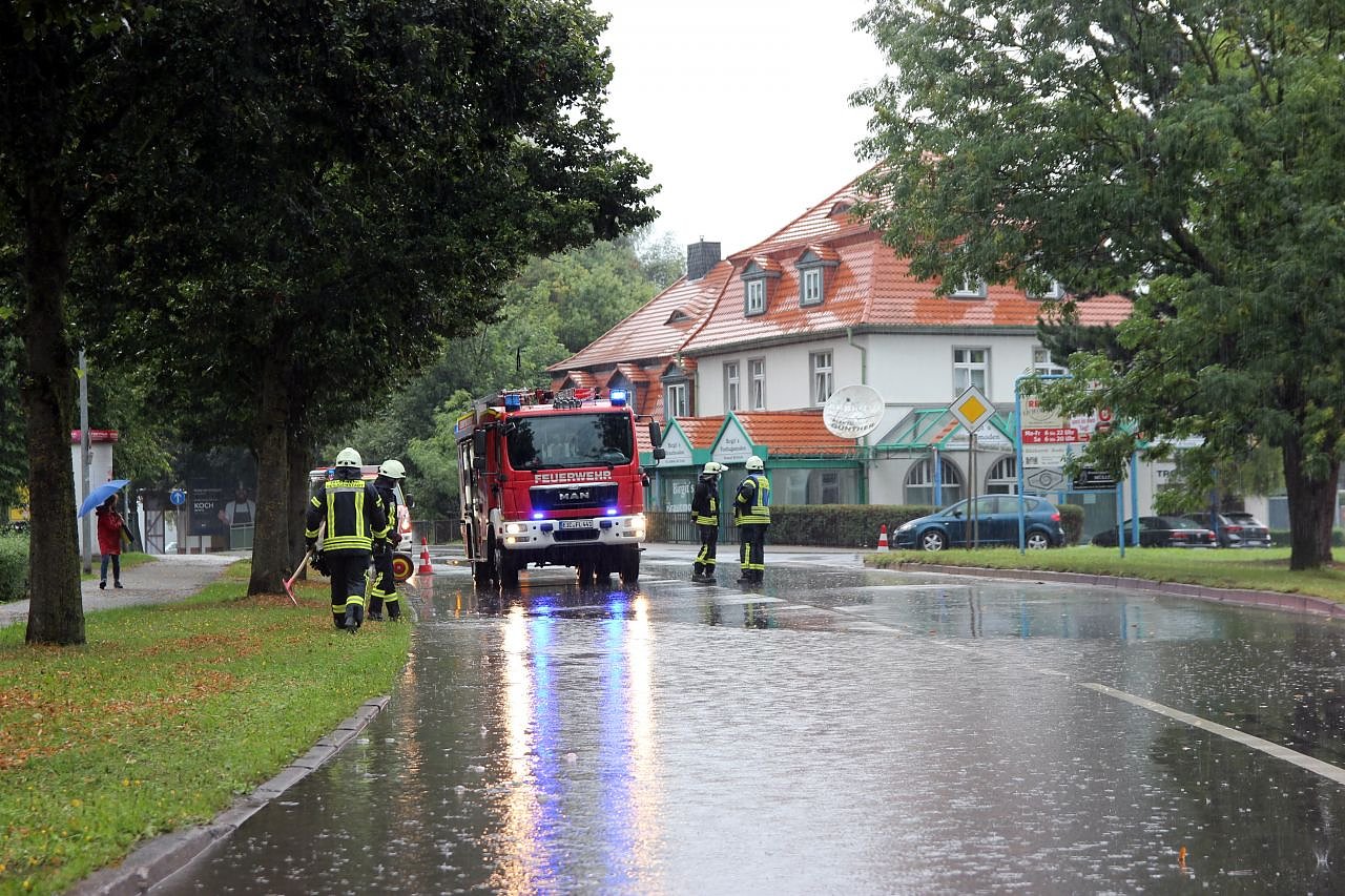 Starkregen sorgte am Sonntagnachmittag dafür, dass die Feuerwehr Heiligenstadt an mehreren Stellen im Stadtgebiet tätig werden musste. So waren die Fahrbahnen in der Dingelstädter Straße und am Liesebühl teilweise überflutet...