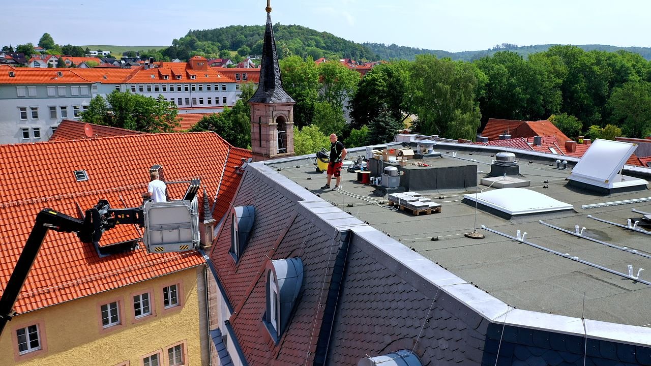 Autor: redWorbis. Das Verwaltungsgebäude Kaufeck in Worbis wird derzeit mit einer PV-Anlage ausgerüstet...