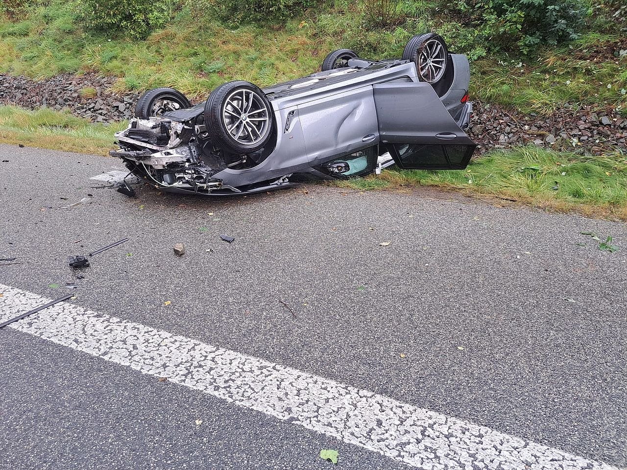 Zwischen der Anschlussstelle und dem Höllbergtunnel kam die Fahrerin mit ihrem BMW bei Starkregen von der linken Fahrbahn nach rechts ab, prallte in die Böschung und überschlug sich dann mehrfach. Anschließend kam das Fahrzeug auf dem Dach liegend auf dem Standstreifen zum Stehen.