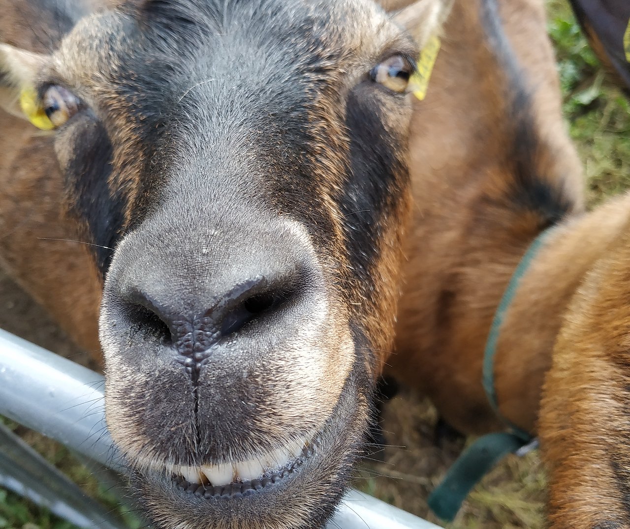 "Wir waren heute auf der Ziegen Alm bei schönen herrlichem Herbstwetter. Anbei haben wir diesen Schnappschuss gemacht, die Ziege lächelte uns dabei an und zeigte uns ihre gepflegten weiße Zähne"...