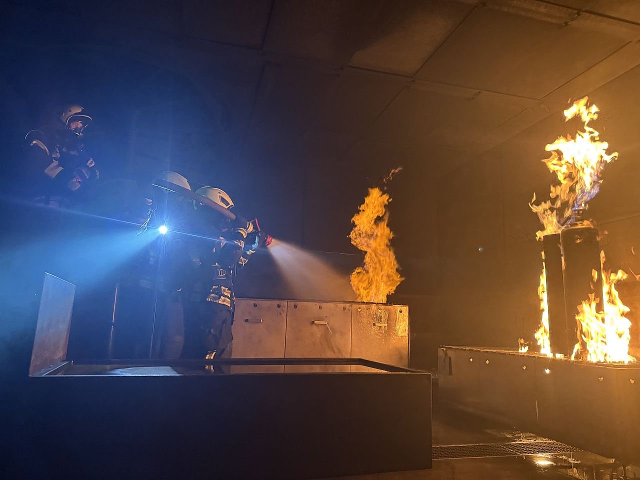 Feuerwehr übt in Brandsimulationsanlage