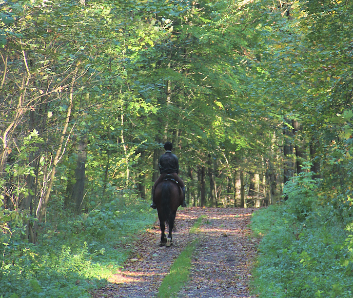 Steigert für viele Waldbesuchende den Naturgenuss: Begegnung mit Pferd und Reiter. Gegenseitige Rücksichtnahme vorausgesetzt (Foto: Dr. Horst Sproßmann) Steigert für viele Waldbesuchende den Naturgenuss: Begegnung mit Pferd und Reiter. Gegenseitige Rücksichtnahme vorausgesetzt (Foto: Dr. Horst Sproßmann)
