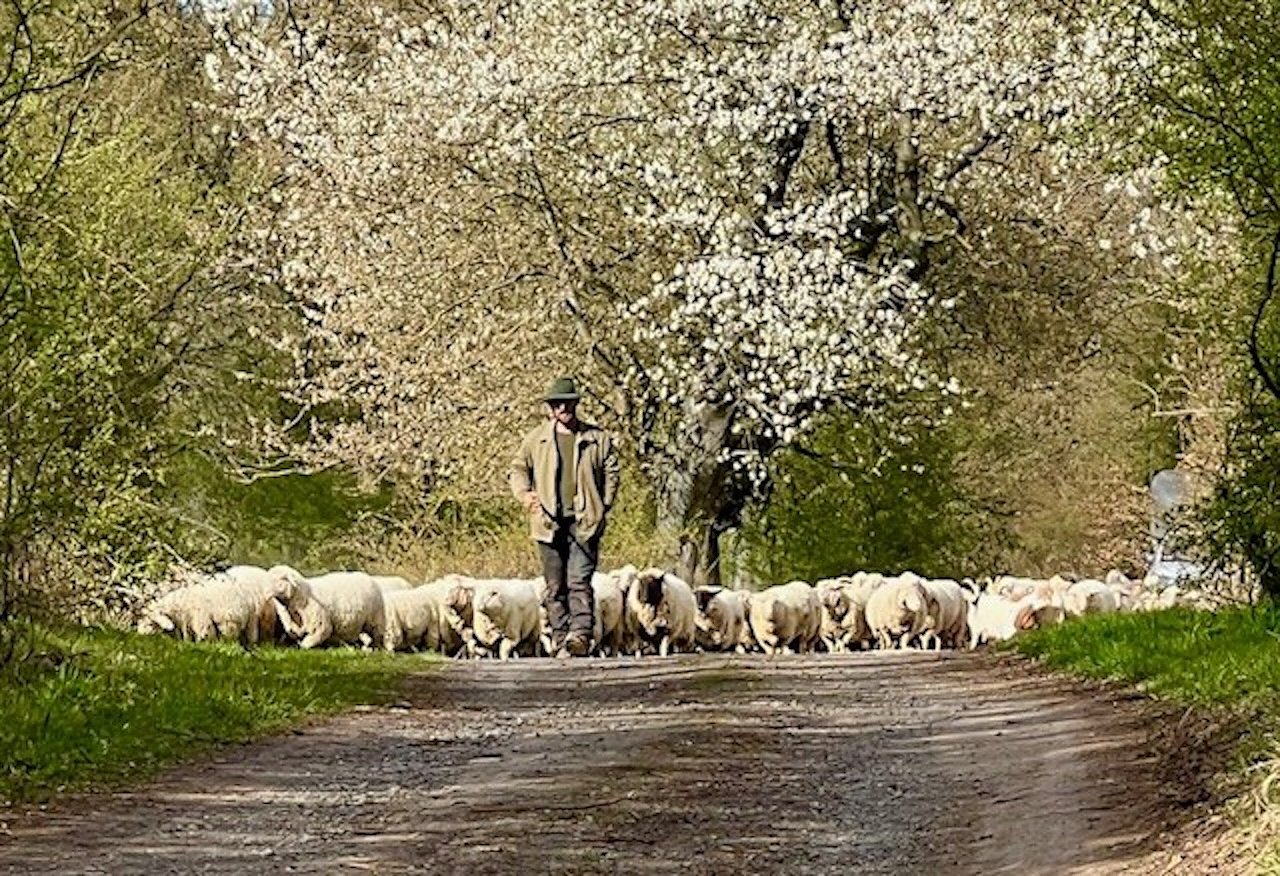 Diese Schafherde habe ich am Wochenende in der Nähe von Questenberg aufgenommen. Sehr selten sieht man heute so etwas. Mit den im Hintergrund blühenden Bäumen symbolisiert das Foto perfekt den Frühling.