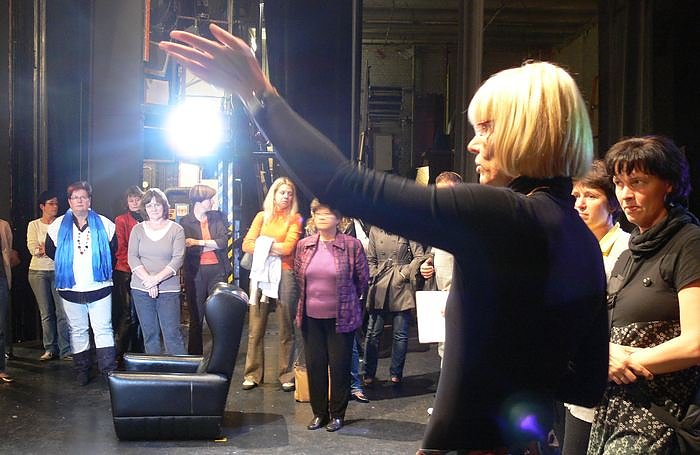 Unser Ziel war es, den Lehrern vorzustellen, wie sie Theater in den Unterricht einbinden können, so die Theaterpädagogin Bianca Sue Henne, die selbst direkt an den Schulen Workshops durchführt. Gemeinsam mit der Künstlerischen Betriebsdirektorin Angela Kalms (Foto) konnten die Lehrerinnen und Lehrer einen Blick hinter die Kulissen werfen und an einer Theaterführung teilnehmen.