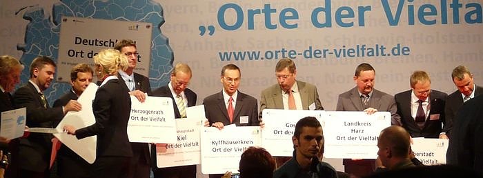 Autor: khhHeute haben der Kyffhäuserkreis und die Stadt Nordhausen die Auszeichnung Ort der Vielfalt in Berlin verliehen bekommen. Die Initiative Orte der Vielfalt ist eine bundesweite kommunikative Strategie zur Stärkung von Vielfalt, Toleranz und Demokratie, deren Anliegen es ist, die demokratischen gesellschaftlichen Kräfte unseres Landes – angefangen von Bund, Länder, Kommunen, über die Organisationen, die Bürgerinnen und Bürger, politische Parteien, Medien, bis hin zur Wirtschaft und zum Sport zu bündeln und jeder Form von Extremismus entschieden entgegenzutreten.